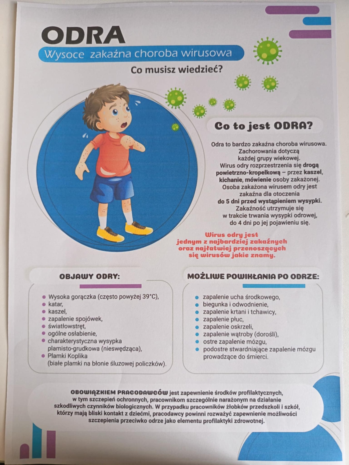 Informacja o chorobie zakaźnej Odrze